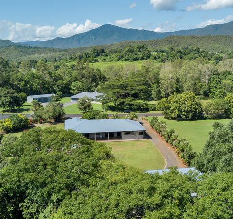 This gorgeous 1.35 Acre property is situated in a quiet valley backing onto Little Mulgrave River and surrounded by mountain views is only 40 kms from Cairns Airport and 15 minutes to all amenities.