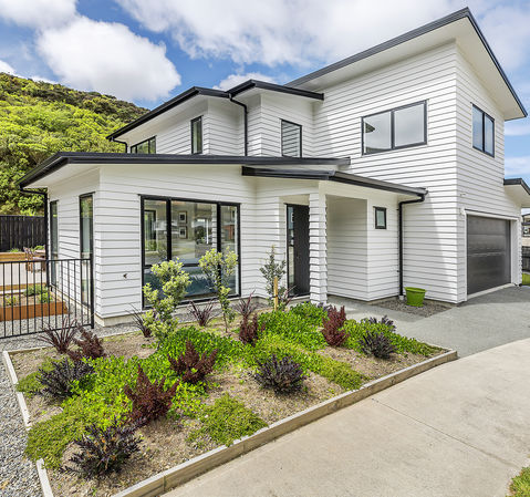 • Light filled family living space with cosy heat pump opening out to a private, northwest facing deck • Sleek modern kitchen with handy breakfast bar boasting stone benchtops, induction cooking and dedicated space for dining • A second, separate living space opens out to the central deck which enjoys low maintenance planting around the perimeter and access to a flat lawn • Well proportioned master bedroom with executive touches including walk in wardrobe, ensuite bathroom and heat pump • Two additional double bedrooms with storage provide options for growing families and guests • A family bathroom, easily accessed by both bedrooms, incorporates a shower and separate bath future proofing for additions to the family • Access to the property is drive in with internal access garaging for two cars • Completed in March 2021 this home enjoys modern construction methods, double glazing, insulation, two heats pumps and all-day summer sun. A current Masterbuild guarantee provides peace of mind for the lucky new owner