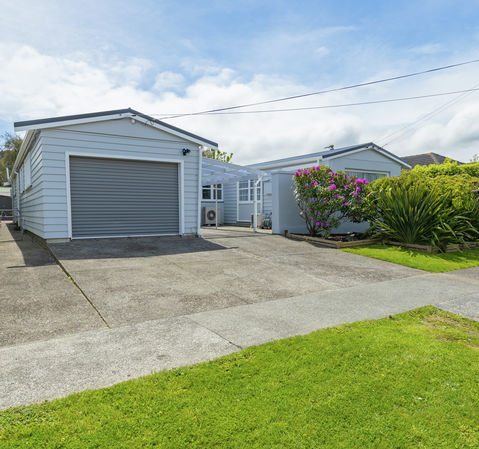 The living area is generous in size and offers a seamless transition through a versatile large covered porch to a sunny and private west facing patio and BBQ area and an easy care garden. The modern kitchen complete with a double oven and cooktop is open plan with a large dining area that could easily accommodate a second living area. There are three double bedrooms on one wing of the home with one of the bedrooms being large enough to be separated into a bedroom plus play room that could easily extend your bedroom count further. The full family bathroom with underfloor heating is modern and offers a bath and separate shower and there is a convenient separate toilet. The other wing of the home offers further versatility with an additional room which could be used as a home office, games room, home gym or as it is currently presented as a guest bedroom. This room has its own separate access and a separate toilet. You will welcome the gas central heating and two heat pumps ensuring everyone is warm in Winter and cool in Summer. Storage is also plentiful with two sheds at the rear and one in the front. There is a carport and off street parking for two additional cars.