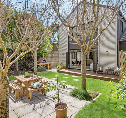 • Palatial open plan kitchen, dining and living flow to a generous sun-drenched deck and fully-fenced level lawn complimented by a wood fire pizza oven - ideal for children, pets and entertaining friends and family;