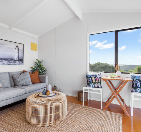 Bathed in all day sun enjoying every hour, from spectacular sunrise through to the afterglow of fiery orange sunsets, its wide panorama sees it all taking in a plethora of scenes to stimulate the senses. The Hen and Chicken Islands, Whangarei Heads, bush-clad hills to the west with folds of velvet green farmland in between.