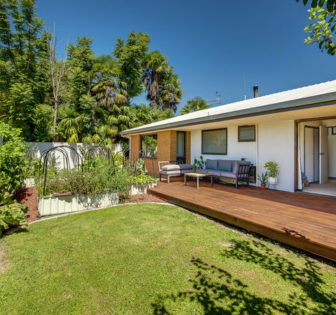 Convenience is key, with a family bathroom, separate laundry, and an additional third toilet catering to everyday needs. The heart of the home is a welcoming open-plan kitchen and dining area, complemented by a separate living room and a bonus office nook, providing versatile spaces for relaxation and productivity. The third bedroom opens up to a sunny garden, while the deck overlooks an established vegetable garden with bonus of irrigation. Just off the lounge, a covered verandah and an inviting inground swimming pool make outdoor living a delight.