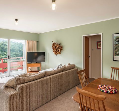 Features of this home include; - Light filled living room. With a tranquil outlook across the hills of surrounding area, this sun-drenched spot, complete with heat pump and SmartVent system, is warm, dry and super comfortable year-round - Indoor/outdoor flow to a north facing balcony. This is the perfect place to relax with a book or host a mid-summer BBQ with friends - Separate, easy care kitchen with plenty of storage. Enjoying the same tree lined outlook, you will be inspired to create here every day of the week - A light filled double bedroom with sliding doors opening onto to the same wrap around balcony - A second double bedroom with inbuilt storage provides options for guest accommodation, flat mates or working from home - Spacious bathroom, complete with shower over bath and separate toilet - A private rear deck and section provides plenty of scope to relax and potter - Located in the centrally located suburb of Crofton Downs, you'll enjoy being within easy access of the supermarket, train station, Mt Kaukau and wonderful facilities of the surrounding areas.