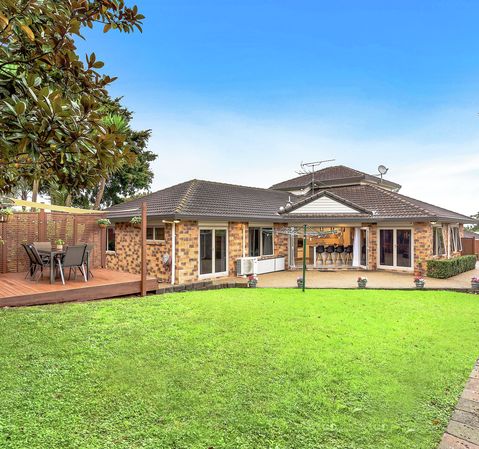 The heart of this 253sqm (mol) home is centered around the multiple spacious open-plan living and dining areas that flow out onto a low maintenance fully fenced garden providing year-round sun. The modern kitchen is well-equipped with gas cooktops, a dishwasher, vast bench space, and breakfast bar.