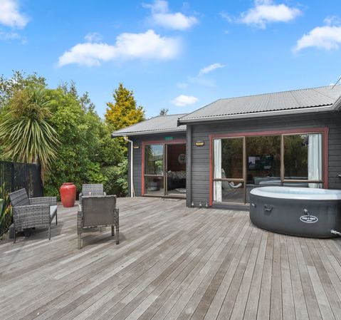 The open plan kitchen and dining area leads to not one, but two living areas, both positioned to capture the indoor/outdoor flow this home provides. Well landscaped grounds, clean air approved wood-burner, heat pump, and an HRV system, this is a home that offers a comfortable lifestyle.