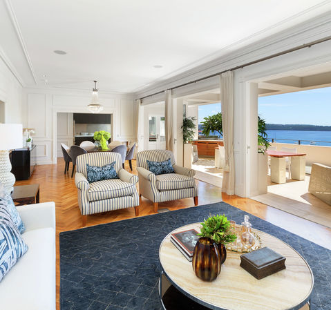 A masterwork of heritage style meeting contemporary luxury, this 2-level penthouse is a 5-bedroom jewel, exuding a rare grace and blessed with world-class views right up Sydney harbour to the Heads. Exclusively positioned in the 1920s "Darnley Hall", this is elite Sydney living at its most elegant, set over 415sqm of indoor/outdoor space. Meticulously updated and astutely combining its inherent classicism with a rebuild overseen by famed designer Tonka Andjelkovic, the home features a radiant NE-facing terrace, huge master bedroom wing and outstanding flowing living areas. Standing as a landmark opportunity in a premier enclave, this opulent home sets a magnificently graceful standard in prime Elizabeth Bay living.
