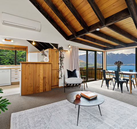 Located down a private laneway, you will find this a great weekender, fabulous first home or trusty investment. Views from the living area and bottom bedrooms are simply incredible, stretching over Lake Wakatipu, over the Kelvin Heights golf course, and across to The Remarkables mountains. A stunning vista to gaze at over your morning coffee. The fully fenced outdoor area is a great place for kids or pets to play and enjoy the sunshine.