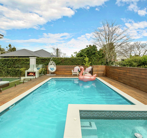 The open plan living anchors the home, where the designer kitchen takes centre stage. Be the most coveted invitation among friends this summer, as they delight in the pool area with adjacent deck and built in spa that overlooks gorgeous low maintenance gardens.