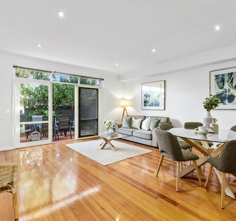 Hidden away in a quiet cul-de-sac, this private townhouse exceeds expectations with its beautifully appointed interior and premier lifestyle position within steps to Fleming Park, Nicholson Street cafes, Lygon Street, Merri Creek, Brunswick station, Brunswick East Primary School and Brunswick Secondary College. Timber floors provide an impressive introduction into the two separate living areas which accentuates this home’s incredible practicality while a brilliantly equipped kitchen with stainless steel cooking appliances and a peaceful courtyard with a flourishing lemon tree sets the scene for relaxed entertaining. Accommodation abounds upstairs with three generous robed bedrooms including a luxurious master bedroom with sparkling ensuite while an upstairs spacious bathroom with spa bath, sunny balcony, downstairs powder room, carport, Nobo heating, dishwasher and European laundry completes this savvy investment or low-maintenance lifestyle sanctuary.