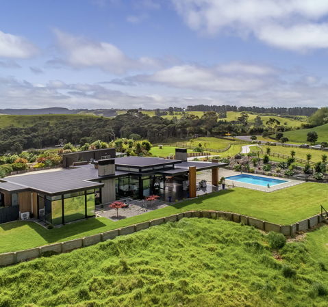 Reluctantly for sale by meticulous owners is this near new home in Tupare Estate where the epitome of 'lifestyle' is captured within the home and its surrounds overlooking the magnificent Kaipara Harbour. The expansive family home of 250 sq m sits amidst 2.6 ha with sweeping elevated views of the harbour and countryside. The indoors flows seamlessly to the outdoors where 105 sq m of covered entertaining space incorporates an in ground pool, cooking facilities, an open fireplace and TV screen. Two large sheds on the property (52 sq m) house vehicles and toys. One would be perfect as a stable. In addition, estate residents have exclusive rights to an Olympic size horse arena, stables, stock yards and loading ramp, stock bore water, community hall, tennis court and private boat ramp. A wetland reserve at the end of the road has acres of native plant and bird species. The ornithologists, equestrians, fishermen and gardeners in the family can lead the lifestyle they desire only 15 minutes from Helensville township and 60 minutes from Auckland CBD. Revealed at the end of a sweeping driveway the stunning architecturally designed home has a black steel roof sitting like wings above big block walls, cedar panelling and soaring walls of glass. Walls of glass fold back completely to make the inside and outside one. Cool tiles underfoot lead you in to the impressive entertainer's kitchen and dining area with separate large scullery which adjoins a cosy family lounge complete with fireplace. Family members and guests enjoy luxurious accommodation with four double bedrooms and three bathrooms. The master suite has a huge dressing room and an en-suite overlooking a private enclosed garden. Every conceivable convenience is provided for your enjoyment - there are just too many features to mention. If you are seeking a high-end lifestyle in a rural location not far from city amenities then this property is for you. Circumstances dictate that the owners reluctantly must sell so bring all offers.