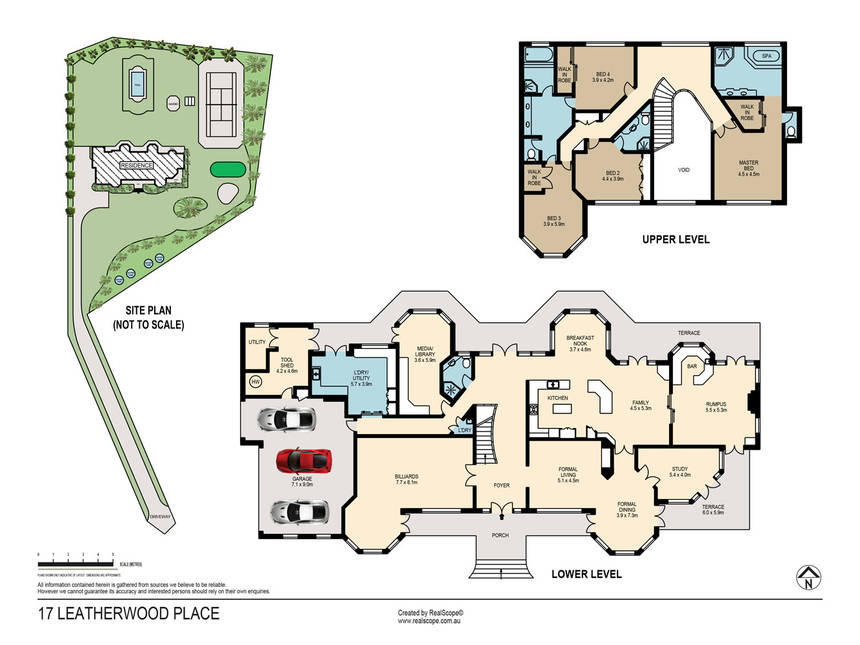 Entertaining is a key element to the design with a series of grand entertaining spaces surrounded by terraces, including billiard room, formal lounge with fireplace, formal dining room, rumpus, family room, home office, library, lounge, media room and family meals area. At the heart of the home is the spacious kitchen featuring granite bench tops, an island and quality stainless Smeg appliances. On the upper level four spacious bedrooms provide room for the family, with the main bedroom containing a marble ensuite with spa, separate WC and walk in robe. The second bedroom also has an ensuite, while the remaining bedrooms are interconnected by the family bathroom.