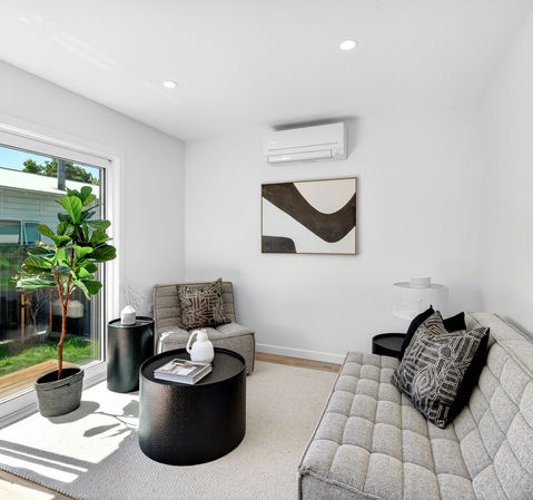 Step inside to a bright open-plan layout where the kitchen, dining, and living flow together seamlessly. Quality appliances, air conditioning, and double glazing ensure every day feels just right. The bedroom includes a double built-in wardrobe, and the bonus study offers flexibility for work or hobbies.