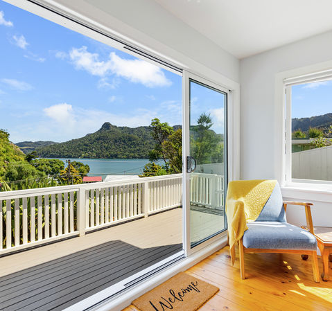 Elevated in a sun-filled bush clearing, the one-bedroom, one-bathroom cottage is backdropped by vivid blue sea vistas and dense green forest headlands. Inside, the cottage evokes a feeling of spaciousness with an open living zone offering perfect synergy between the wrap-around deck and views. Timber flooring reflects a nostalgic warmth, the crisp whites evoke calmness, and a modern kitchen promises all-round function.