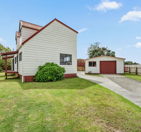 Situated at the end of a quiet cul-de-sac next to a public reserve and close to schools, Ruakaka Township, and a forthcoming Recreational Centre, this well-maintained home is both convenient and affordable. The open-plan layout with high ceilings creates a charming atmosphere, while the spacious loft-style bedroom upstairs offers versatility and comfort.