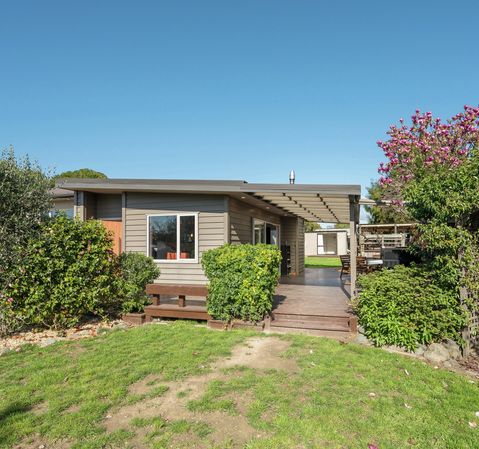 The heart of this property is its large living area, where the wood burner ensures cosy evenings during the cooler months. The expansive stacker doors open out onto a covered entertaining area. This outdoor space is perfect for summer BBQs, and gatherings with friends and family.