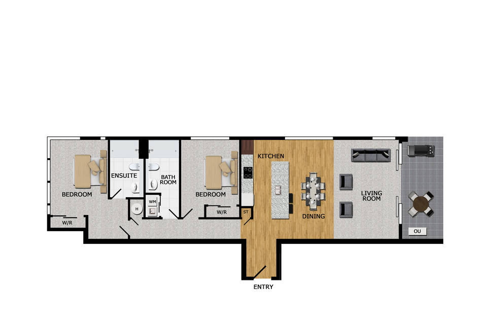 Situated on the sun-soaked Northern face of ‘30 Madden’, apartment 201 is a light-filled oasis finished to the highest level, enjoying all-day sun stretching across the entire length of the residence. Imagine watching the sunrise from your private corner balcony and relaxing in the evening while taking in dusky sunsets from the luxuriously appointed and private master bedroom with wraparound floor to ceiling glazing.