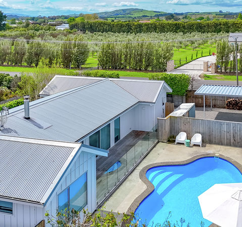 • Expansive, light-filled open-plan living. A second living room could easily be configured to be the fourth bedroom • Modern designer kitchen with premium finishes and quality appliances • Spacious Stylish tiled bathrooms • 2022 built so double-glazed, insulated, has a Kent fire, heat pump and heat transfer unit in place for year-round comfort and energy efficiency • Flexibility is on offer with the Seamless indoor-outdoor flow to a sun-soaked entertaining areas. With kwila decking to the West facing garden or views of the sparkling in ground saltwater swimming pool for ultimate all year outdoor entertainment • Single carport - with further room for off street parking, ideal for a boat or caravan. • Fully fenced for privacy and peace of mind • Lock up and go with lower maintenance grounds • Short walk to the village, local parks and vineyards • A paved designated Spa pool area is ready to go