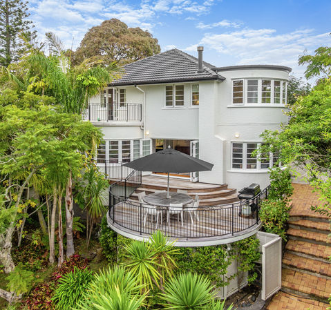 This classic 1940's stucco home at 25 Woodside Crescent is in one of St Heliers sought after locations and is a short walk to St Heliers Beach and cafes, St Heliers School and to public transport including all other local amenities. Surrounded by homes of similar quality, this beautiful property has been meticulously renovated throughout with a generous entrance way that sets the tone of this family home. The large open plan kitchen is combined with casual living and family dining, and enjoys stunning northerly aspect to the private garden. One of the many features of this home is the highly appointed kitchen that forms its heart and features an induction cooktop, wine fridge and large stone bench top. This space connects, with ease to a separate living room with cosy gas fire. The in-built curved window seating is a lovely feature of this elegant home. This separate living opens seamlessly to a delightful north facing deck which enjoys elevated park-like views. All four light filled bedrooms enjoy vistas of nature. A double bedroom, with generous wardrobing can be found on the lower level as well as a large family bathroom. On the upper level, the light filled master bedroom enjoys stunning views and is complimented by a generous ensuite and walk in robe. Two further double bedrooms, both with private decks, are on this level and share a large family bathroom. Double garaging with two off street parking, provides for all of your parking needs. So step into this family lifestyle and make this home your new lifestyle.