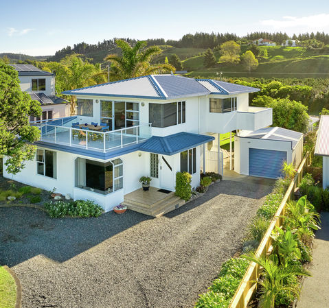 A substantial three level home was designed and built by the owner and cleverly thought out to capture expansive views over the ocean to Mahia Peninsula, Portland Island and back to the west a beautiful rural backdrop. The attention to detail throughout this home is evident in all aspects, with many surprises and hidden quirks along the way.