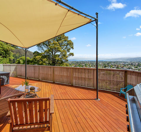 This home has the "WOW factor" - Amazing afternoon sun streams into the open plan living/kitchen/dining which leads to a large deck with impressive views looking across the valley, out to the harbour and beyond to Wellington City.