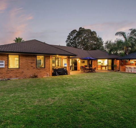 The sprawling one level floor plan is cleverly designed to maximise north facing sunshine, with flow from the main living, media and games rooms, to the outdoor entertaining areas and lawn. Here you will find the ultimate in outdoor entertaining, an bar complete with power, lighting and Sky TV - an epic entertainers delight. Enjoy hosting family and friends, while the kids play safely on the huge flat and fully fenced section.