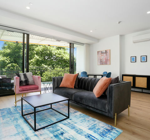 Overlooking leafy Victoria Park, this two bedroom home in The Vulcan is cool urban lock-up-and-go living at its best.