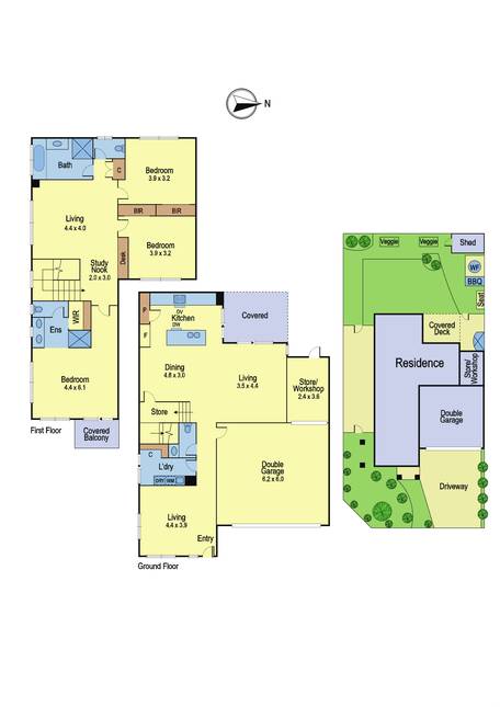 The ground floor introduces a lounge complemented by spacious open plan living-meals wrapping around a kitchen showcasing stone tops, 900 mm range, and designer tiled splashback that serves with effortless finesse. The first floor opens to a large teen-retreat with the welcome bonus of a fitted study area.