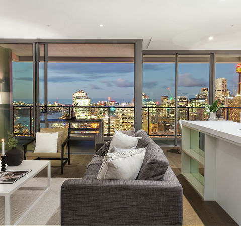 Showcasing exquisitely finished interiors, cutting edge design and a spacious layout, this sky home is perfectly poised in the north east corner of 'Darling One', with postcard views across the city and Darling Harbour.