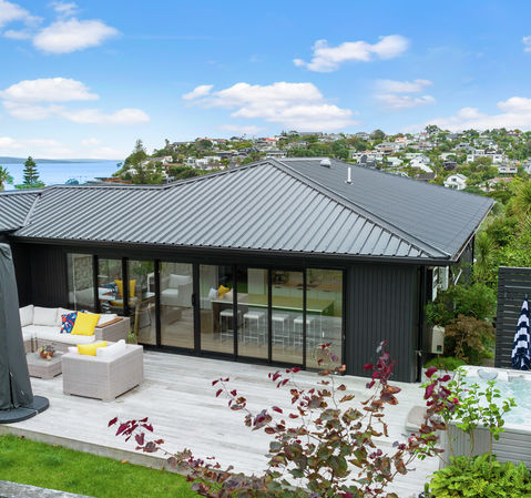 Perfectly positioned a short stroll from Rothesay Bay Beach & Browns Bay Primary School & capturing views out to Rangitioto Island, this north-facing home offers options for many stages of life. From the ideal 'lock-up & leave', to the perfect downsize from the big family home to a great layout for a small family, or maybe a teenager needing their own space downstairs. Welcoming you in a boardwalk style entrance, the home instantly opens up to an expansive indoor-outdoor space, encompassing the designer kitchen, dining area & large decks flowing onto the flat lawn. This stunning design is an entertainer's dream, with a large island bench for serving, whip up a feast while mingling with guests and still being able to watch the kids or pets playing outside. Then enjoy the end of your day sitting in a spa pool on the deck under the stars in your own private landscaped garden oasis. The cleverly designed upstairs lounge has large sliding doors allowing you to close it off to create a cosy warm private retreat or 'snug' or have it open to create a flow on from the dining area. Three bedrooms & the gorgeous main bathroom with oversized shower & deep soak bath are also on main level. This includes the master suite complete with walk-in wardrobe & ensuite. The master enjoys its own private balcony, the perfect spot to relax with Rangitoto Island as your backdrop. Downstairs offers another bedroom, bathroom, and lounge. This area is ideal for teenagers, guests, or Airbnb. Fully fenced with mature established fruit trees, good storage, garaging & situated in a quiet cul de sac completes this awesome package.