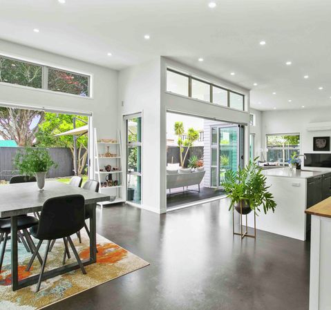 Polished concrete floors run throughout the living areas and in both the main bathroom & ensuite, and sky lights are a welcoming addition providing natural light into the home. Other understated features include generous hall cupboards for linen or extra storage as well as an office nook cleverly hidden away behind a slider door.