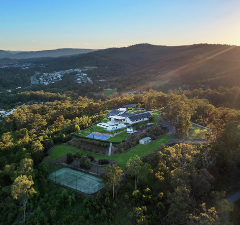 The 20-acre estate at 36 Jenkins Court, Upper Coomera sits imposingly above its neighbors, a private mountain retreat with resort-style living.