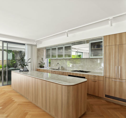 Impeccable gourmet stone kitchen featuring bespoke joinery