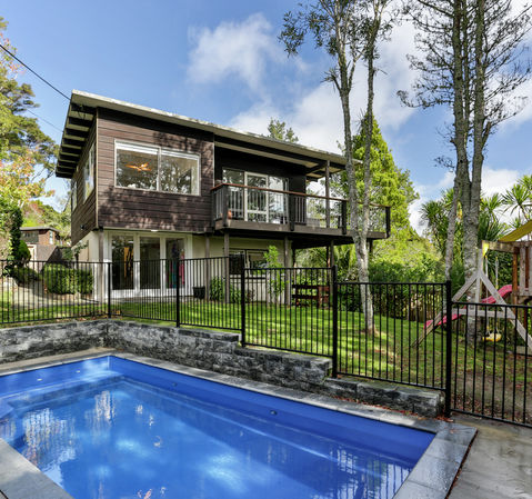 An architectural Titirangi home built by Dutch immigrants in 1972, this light-filled four bedroom residence with heated pool combines classic mid-century style with essential modern comforts.