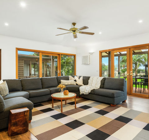 The backyard is also a highlight boasting an awesome kids' playground, several established trees, veggie patches & uninterrupted views