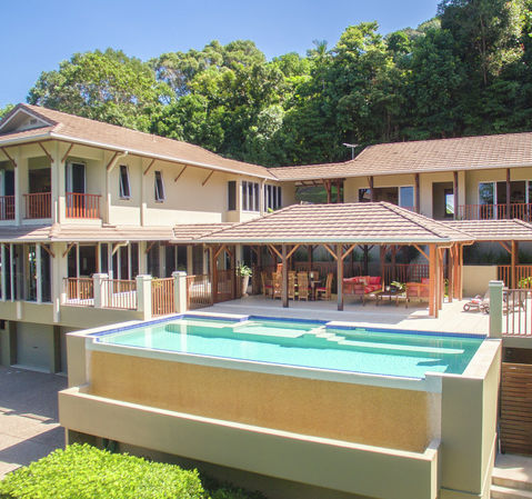 Set amidst a panorama of dramatic views, this expansive architecturally designed residence is extraordinary in every way. Finished to an exacting standard, the property emanates a sense of tropical refinement, elevating attention to detail to a benchmark level. The pavilion style home offers the perfect complement to its beautiful natural surrounds, with multiple living and leisure zones set around a wet-edge swimming pool and loggia. This eminently private, contemporary sanctuary is testament to a marriage of outstanding design and a magnificent environment.