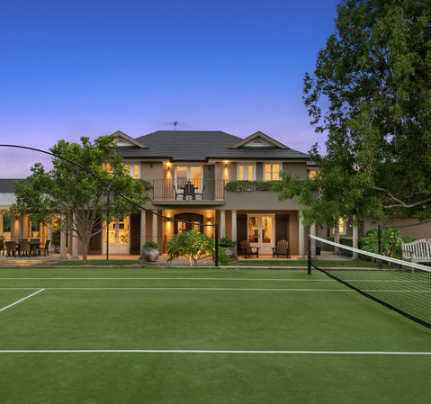 Combining grandeur with the very best of family living, this spectacular trophy home set on two titles encompasses 1,633sqm of beautifully landscaped gardens is perfectly positioned to enhance its northerly aspect and to capture elevated views. Looking out upon both its championship sized tennis court and north facing swimming pool, the impressive light-filled interiors achieve a seamless connection to the great outdoors.