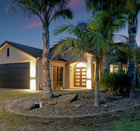 Spectacular by night due to extensive outdoor lighting, tropical planting and expansive private deck and patio areas promise to transport you to holiday mode everyday. Young kids will giggle their days away creating dreams on the fabulous elevated playhouse or within the safe confines of the private fenced garden areas. With plenty of off-road parking there is also plenty of scope to cope with the boat!