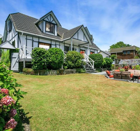 The tudor-style exterior, complimented by the warm ambience of beautifully presented interiors says it's the home you've been waiting for! The sun-drenched open plan offers excellent in-out flows out to a north facing deck and to sheltered patios and pergolas around the property.