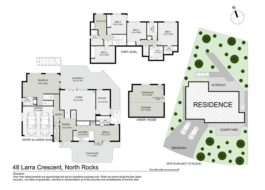 Double lock-up garage plus workshop and storage underhouse