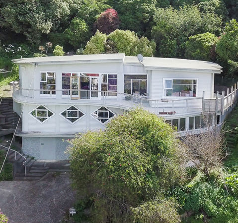 Step out onto the lovely, curved balcony sweeping three sides of the home where you can relax, take in the fresh air, whilst enjoying the elevated vista of Island Bay.