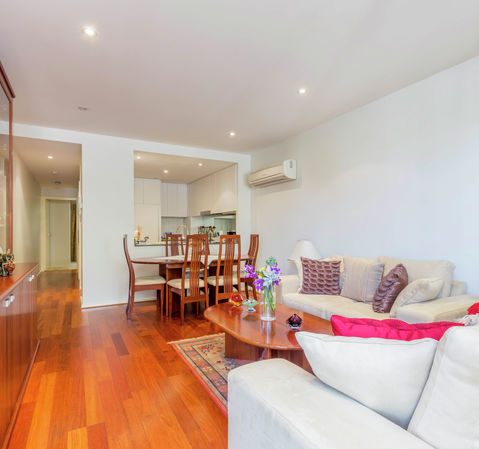 Features: - Timber flooring - Ample storage - Double glazing - Miele appliances - Integrated fridge and freezer - European laundry - Two-way accessible bathroom - Reverse cycle heating and cooling - Electric hot water - Gated front and rear courtyard - Secure underground single car space with storage cage - Intercom for visitors