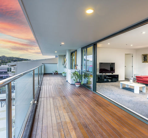 Located across the road from the Auckland Domain, spacious apartments on George Street have always been sought after. Enjoy your morning coffee watching the sunrise on the expansive 28m2 deck (approx.) and watch the sun fill the apartment with light, enjoying views to Newmarket, Mt Hobson, One Tree Hill, and Mt Eden.