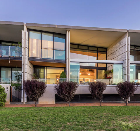 Poised in a unique lakeside position, this innovative terrace residence has been architecturally considered to maximise and celebrate the timeless design, adaptable layout and panoramic lake views.