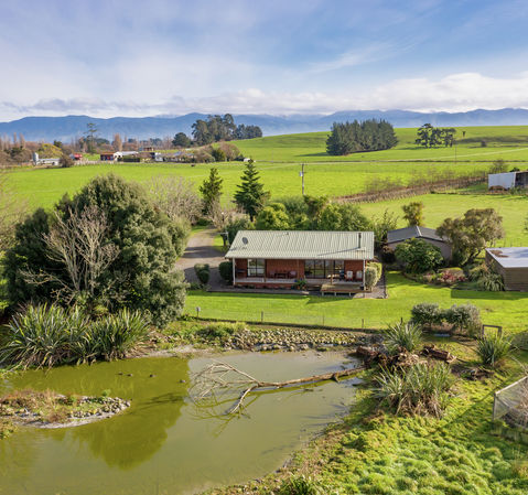 501 Waihakeke Rd- 6000m2 section Situated on a quiet country lane located 7km SE Carterton Charming Rustic 2 bed log style home with carport built 1991 - featuring open plan and alfresco dining and living -- Over looking 'Home Pond' a haven and sanctuary for waterfowl plus extensive bird rearing caged area. Single garage workshop complex , 3 bay utility storage shed and Garden Office complete this country lifestyle