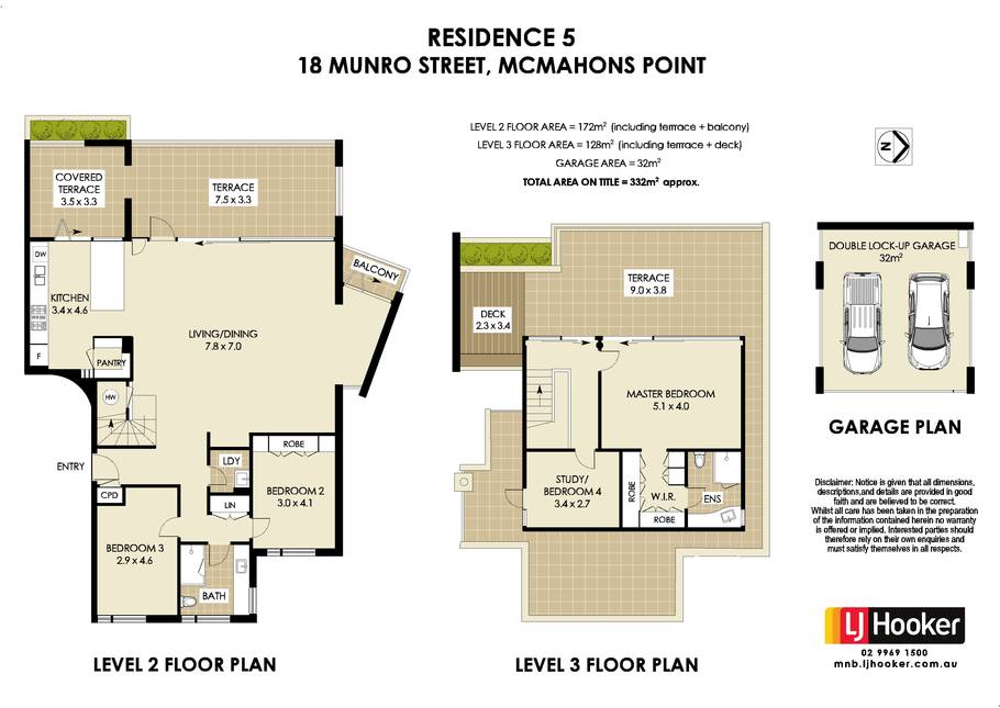Two bedrooms upon entry level plus a second floor study with private balcony