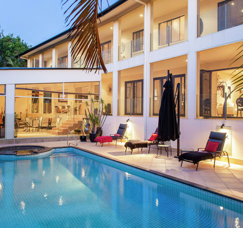 On the lower level lush established gardens give the swimming pool a luxury tranquil backdrop. A large alfresco cabana has been purpose built with an additional kitchen, bar and a hot tub and plenty of space to unwind, relax and spend time with your guests.