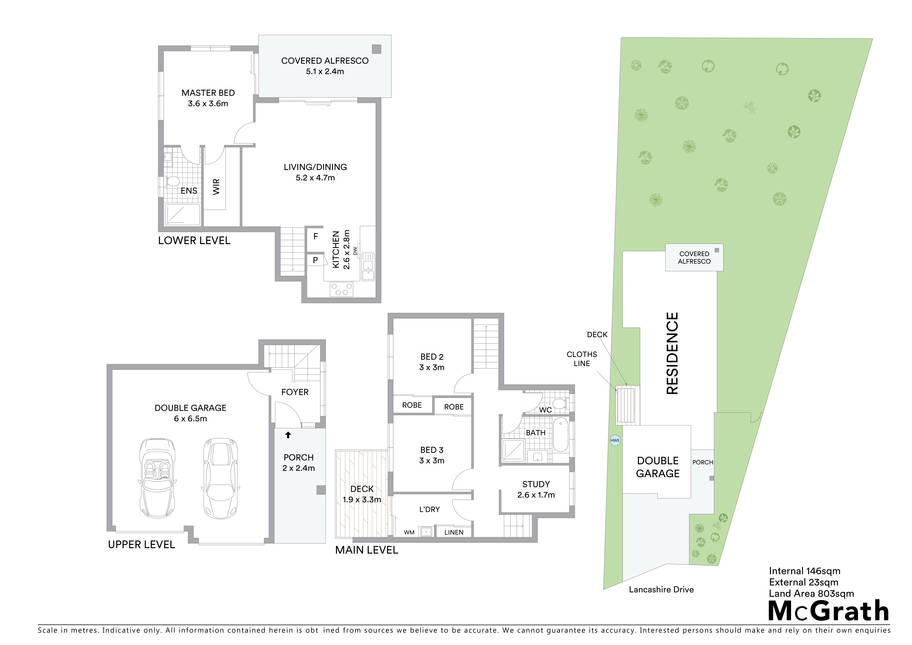 3 Bedrooms + Office/Study, 2 bathrooms (Main + Ensuite), Double Lock up Garage