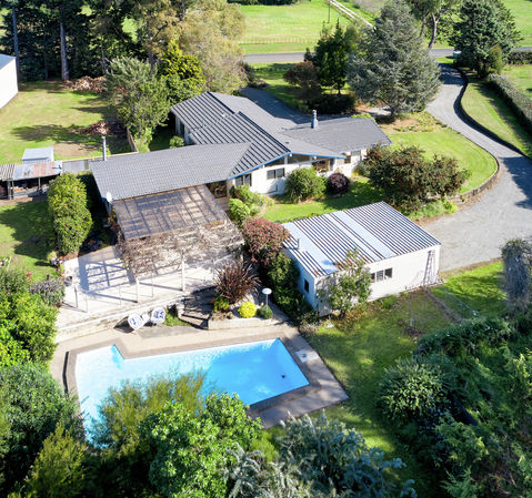 Discover the ultimate rural lifestyle on this magnificent 10 acre (4.04 ha more or less) property, zoned Plains Production. This impressive property offers the perfect blend of style and functionality, with 4 bedrooms plus a study, 2 stunning bathrooms, 2 dining areas and 2 spacious living rooms. The heart of the home is a modern kitchen with raked ceilings and high windows, creating a striking visual effect, and features a butler's pantry. Enjoy the warmth and ambiance of two separate living rooms, each with woodburners for those chilly winter nights. Entertaining is a breeze thanks to the fabulous outdoor flow from the living to an inviting covered patio area, complete with an inground pool, perfect for enjoying our hot Hawkes Bay summers. Tucked away next to the house is the double garage for the cars. What really sets this property apart, is the most incredible sized 596 sqm steel-framed coloursteel shed. Divided into 3 adjustable compartments (with 4 x four metre roller doors), the opportunities are endless here. From leasing for income, a home-based business, storage for hobbies, or maybe one compartment for each!