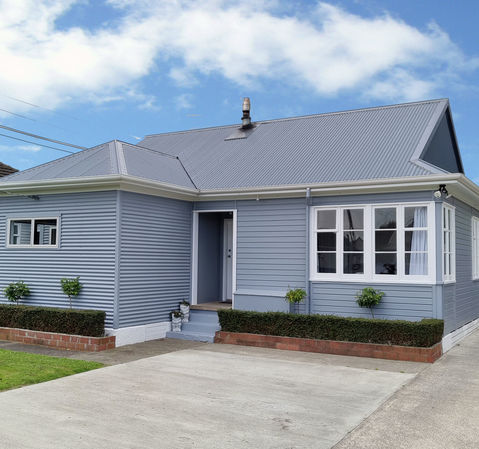 Three good sized bedrooms, and modern bathroom is recently refurbished and very chic, and has separate bath and shower. Insulated throughout; in-ceiling, in-walls, under-floor. Guest carpad at front, and huge off-street parking at rear with a single garage and a very useful spacious studio adjacent. Lovely back lawn for pets and children to run and play.