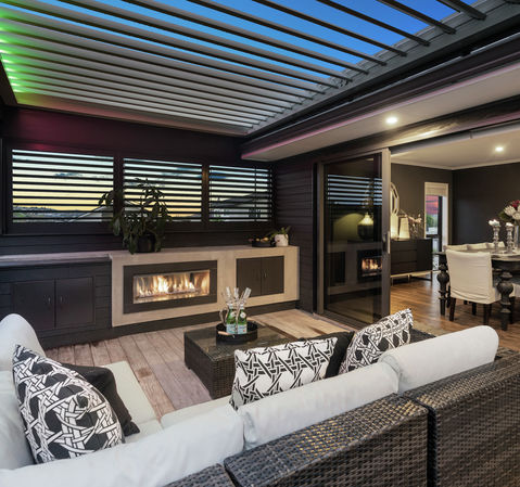 Interconnected living spaces flow to a sheltered outdoor entertaining zone complete with gas fireplace, and enjoying the protection of a louvred roof to ensure maximum outdoor living all year round. Whilst the adults relax there is plenty of space for the children to spread out too - trampolines and swing sets welcome here!